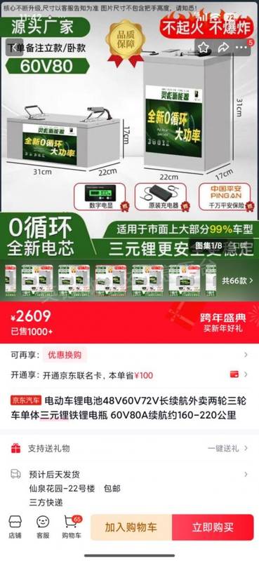 出售电动车电池。25年5月份购买,正常使用,无损坏,60伏80安,续航行驶160...
