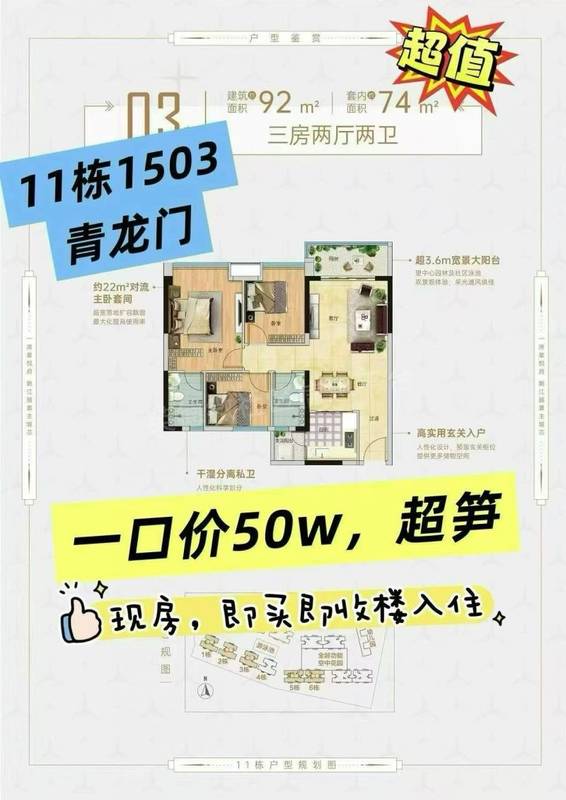 [色]星悦府现楼,一口价50万[机智] 笋过麻竹笋,3房2厅2卫...
